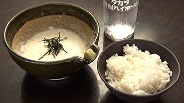 最後の〆は「とろろめし」。大和芋に醤油、塩を加えてすり鉢ですった、ふわふわのとろろをごはんにかけていただく。「はぁ、旨いなぁ……」と、ため息が漏れるきたろうさん。「粘り気があって、すごくおいしい。贅沢ですね〜」と武藤さんもうっとりだ。