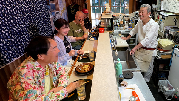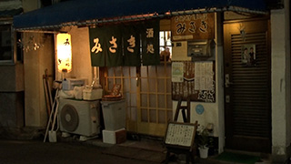 東京都台東区谷中(やなか)にやってきた、きたろうさんと武藤さん。谷中銀座商店街をぶらぶらしながら向かった今宵の酒場は、創業29年目を迎えた老舗店「季節料理の店 みさき」。厨房で腕を振るうのは、ご主人の三崎進さん(67歳)だ。昭和の風情が残る賑やかな店内で、さっそく、ふたりは焼酎ハイボールを注文して「今宵に乾杯!」