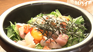 最後の〆は、「石焼海鮮飯」。海鮮版ビビンバといった一品で、ご飯の上には、サーモン、ホタテ、タコ、イカ、カンパチ、水菜、生卵!(※海鮮は仕入れによって変わります)アツアツの石窯の中で混ぜ合わせていただけば、「海鮮がゴロゴロ入って贅沢! タレで味が付いてるけど、魚介の味がちゃんとして、いいバランス!」と大満足の武藤さんだ。