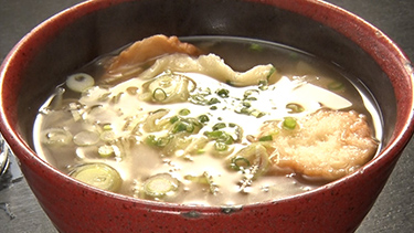 最後の〆は宮城県登米市の郷土料理「はっと汁」。ご主人曰く「伊達政宗が、あまりのおいしさのため、“法度”にした」とか。小麦粉の団子と仙台麩を醤油と鰹出汁で煮込んであり、「モチモチとふわふわが一緒に食べられておいしい!」と武藤さん。きたろうさんも、「シンプルだけどおいしいなぁ」としみじみと味わった。