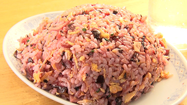 最後の〆はチャーハン。なんと7種類から選ぶ。キムチ、牛すじ紅生姜、にんにく、しば漬け、普通、高菜明太、海老とニラとのことで、迷ったふたりは、ご主人おすすめの「しば漬けチャーハン」に! しば漬け色の美しいチャーハンは、「香りがほんのり。さっぱりしていて、おいしい〜」と武藤さん。きたろうさんも、「めちゃくちゃ食べやすい!」と大満足だ。